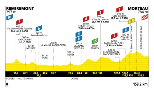 Etappe 6 - vrijdag 16 augustus 2024: Remiremont - Morteau (159,2 km)