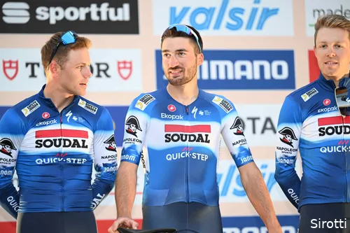 Gianni Moscon, die veel in de schaduw gewerkt heeft in Parijs-Nice. Casper Pedersen wint in Milaan-San Remo dan weer de sprint achter de kopgroep. Daarom noem ik ook ons collectief. Er zijn verschillende renners die echt naar hun beste vorm aan het toegroeien zijn. De feedback die we van hen krijgen, is goed. Alaphilippe is recent ook terug zwaar gevallen, dat zijn kleine dingen die hij meesleurt. Anderzijds was het zeker een goed teken dat hij mee was in de finale van Milaan-San Remo. Asgreen heeft dan weer misschien een streepje voor ten opzichte van de rest, omdat hij bewezen heeft dat hij de Ronde van Vlaanderen kan winnen. Dan weet je dat die koersen je écht goed liggen. De Omloop en Kuurne-Brussel-Kuurne waren pas zijn eerste wedstrijden van het seizoen. Kasper had geen goede Strade Bianche, maar is daarna gestaag gegroeid en begint er door te komen.'