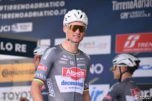 Milaan-Sanremo. Van der Poel vond die vraag 'niet moeilijk'. 'De renners die in beeld hebben gereden. In deze Tirreno was dat vooral