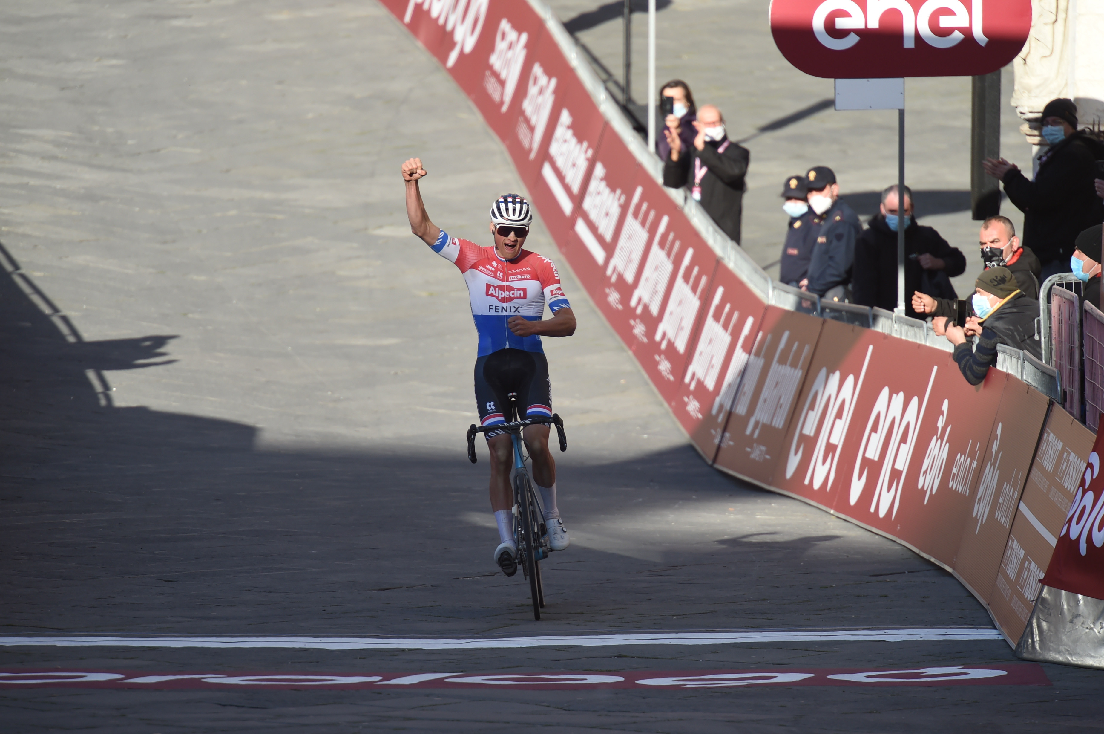 Strade Bianche wilde ik heel graag winnen en het is heel cool dat dat gelukt is', zo begint Van der Poel. 'Ik voelde me heel erg goed en heb aangevallen op de laatste sector. We hebben met z'n drieën (Julian Alaphilippe,