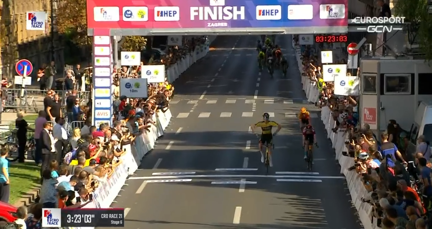 CRO Race bijzonder prettig zijn seizoen weten af te sluiten. De Nederlandse jongeling was de snelste van een klein groepje in de slotetappe. Het betekende zijn eerste overwinning tussen de profs.