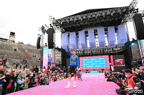elfde plek op zak verliet hij Verona, maar niet voordat hij - net als zijn Italiaanse collega - in het zonnetje werd gezet voor zijn prachtige loopbaan door de Giro-organisatie!
