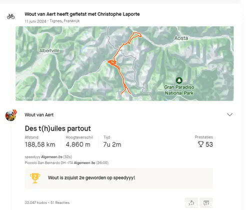 Wout van Aert postte op zijn beurt een veelbelovende Strava-activiteit, waar in ieder geval