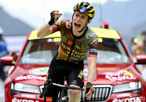 NOS is te zien dat hij de volledige ploeg van Jumbo-Visma bedankt. 'Ik had het nooit zonder jullie hulp gekund. We hebben een plan gemaakt en hebben het perfect uitgevoerd.'