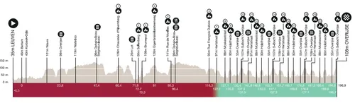 Doorgaans draait het toch vooral om de plaatselijke ronde in en rondom aankomstplaats Overijse, waar we enkele hellingen natuurlijk nog kennen van het WK wielrennen in 2021. De Hertstraat (0,7 km a 4,7%), Moskesstraat (0,5 km a 4,9%), Holstheide (1 km a 5,3%) en S-bocht (1,3 km a 4,2%) moeten meermaals bedwongen worden in de lokale ronde.