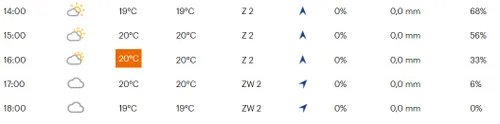 Chrono des Nations vertrekken tussen 14.45 uur en 15.33 uur vanuit Les Herbiers. In de start- en finishplaats van de tijdrit is het zondag heerlijk koersweer, met een graadje of 20 en de zon die er misschien zelfs nog even doorheen steekt. Twintig kilometer verderop in Saint-Prouant noteren we hetzelfde weerbeeld. Ook belangrijk: er zal de hele middag een zuid/zuidwestelijke wind staan die met windkracht 2 niet al te sterk zal zijn. De heenweg blaast dit windje dus tegen, op de terugweg hebben de renners 'm in de rug.