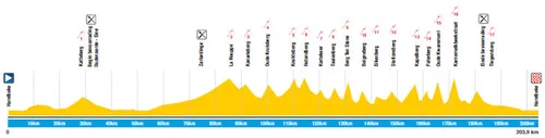 Denk aan de Kapelberg (46 kilometer van de finish), Paterberg (42 kilometer van de finish) en Oude Kwaremont (39 kilometer van de finish), op papier de drietrapsraket die de wedstrijd volledig gaat laten ontbranden. Na de Kwaremont volgen nog de Karnemelkbeekstraat en Tiegemberg, voor we na 204 kilometer finishen in Harelbeke.