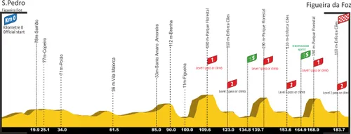 Na de laatste top is het nog zo'n twintig kilometer afdalen en op het vlakke beuken tot in finishplaats Figueira da Fox, dus het kan zijn dat enkele ploegen nog het een en ander recht kunnen zetten. Op zes kilometer van de meet is een stukje oplopend bij Enforca Caes van negenhonderd meter mogelijk nog een perfect lanceerpunt voor de beslissende aanval.