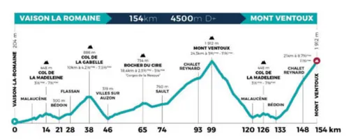 De naam zegt het al: deze wedstrijd draait in zijn volledigheid om de Reus van de Provence, de Mont Ventoux. In totaal krijgen de renners meer dan 4500 hoogtemeters voor de kiezen in 154 kilometer, waarvan het gros natuurlijk op de rekening van de Ventoux komt.