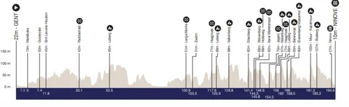 Omloop Het Nieuwsblad kent dit jaar een totale lengte van 197,2 kilometer, waarmee we vijf kilometer minder moeten afwerken dan het afgelopen jaar. Noemenswaardige veranderingen zijn er - op enkele aanpassingen in het begin na - verder niet, waardoor we ons op mogen maken voor het klassieke-Omloop scenario, als het om de vermoedelijke cruciale punten gaat.