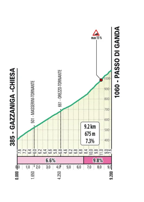 49,5 km; Passo Selvino(12,4 km aan 5 procent)