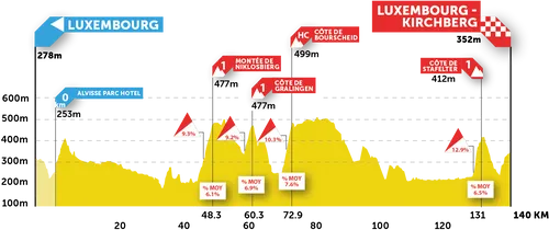 Etappe 1, dinsdag 14 september 2021: Luxemburg - Luxemburg (140 km)