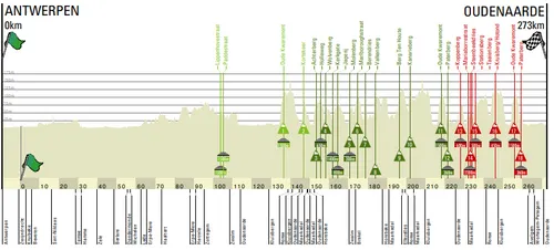 Starten doen we op de Grote Markt in Antwerpen en het parcours kent weinig verrassingen ten opzichte van de afgelopen jaren. Wel is het twintig kilometer langer dan 2021, met een lengte van 272,5 kilometer in plaats van de 254,3 kilometer van afgelopen jaar. De Katteberg en de Eikenberg zijn geschrapt, de Achterberg is daarvoor in de plaats gekomen.