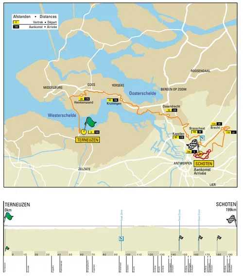 Scheldeprijs het best omschrijven. De wedstrijd begint op zeeniveau in de Nederlandse havenstad Terneuzen, terwijl het hoogste punt dat bereikt wordt maar liefst 22 meter boven zeeniveau is. Alhoewel, dat zegt helemaal niks, want doordat we vlak bij zee zitten en het flink gaat waaien kan het wel eens zwaarder gaan worden dan een gemiddelde Alpenrit met minimaal 3000 hoogtemeters.