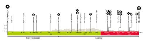 Starten doen we in het Nederlandse Terneuzen, van waaruit we de eerste 75 kilometer door het Nederlandse land afwerken. Onder meer plaatsen als Hoogerheide en Essen worden aangedaan. Daarna betreedt men het Belgische land, om na 140 kilometer voor een eerste keer op de lokale ronde van 17 kilometer te komen.