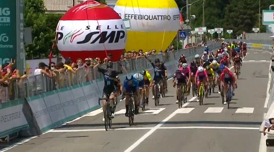 Giro Donne voor het eerst in haar carrière naar de zege in die ronde. Met een stevige glimlach verscheen de Nederlandse dan ook na afloop voor de microfoon, waar ze haar verhaal deed.
