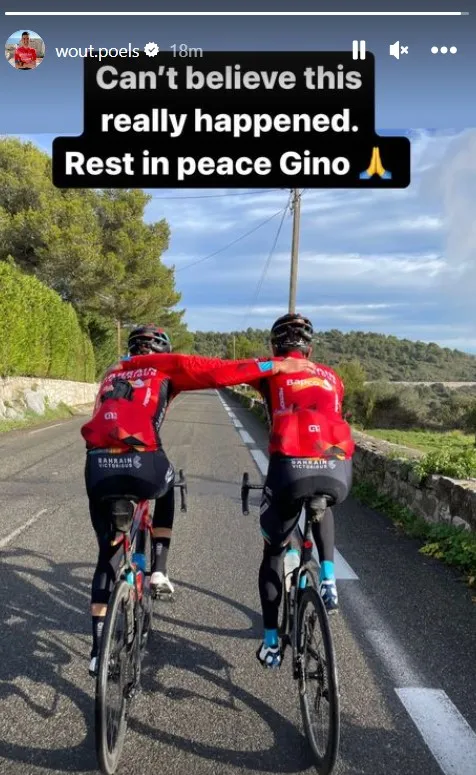 Naarmate de vrijdag vorderde, namen de steunbetuigingen in aantal toe. Renners hadden duidelijk de tijd gehad om het nieuws te laten bezinken en schreven hun verdriet en ongeloof van zich af. Zo nam Tom Pidcock uitgebreid de tijd om stil te staan bij het tragische ongeval. 'Ik heb moeite om het nieuws te begrijpen, er zijn zoveel emoties. Alles is in perspectief geplaatst, het had net zo makkelijk iemand van ons kunnen zijn. Het enige waar ik me aan vasthoud, is dat Gino gestorven is toen hij deed waar hij van hield. Je zal worden gemist, vriend.'