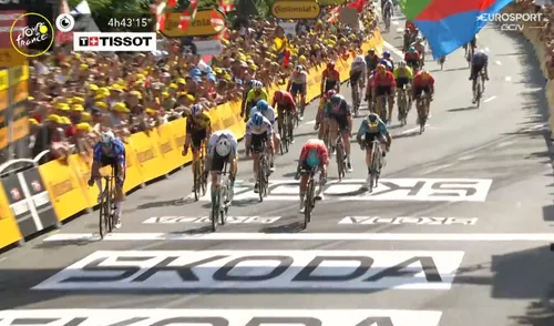 Jasper Philipsen. Na een hectische finale spurtte de man van Alpecin-Deceuninck in Bayonne naar de ritzege, maar het duurde even voordat hij echt als winnaar aangewezen worden.